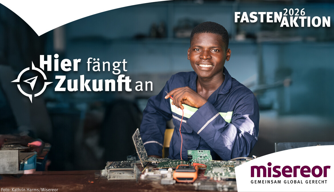 Liebe Schwestern und Brüder, die Misereor-Fastenaktion 2026 steht unter dem Leitwort „Hier fängt Zukunft an!“. Es geht um die berufliche Ausbildung junger Menschen in den Entwicklungsländern.
