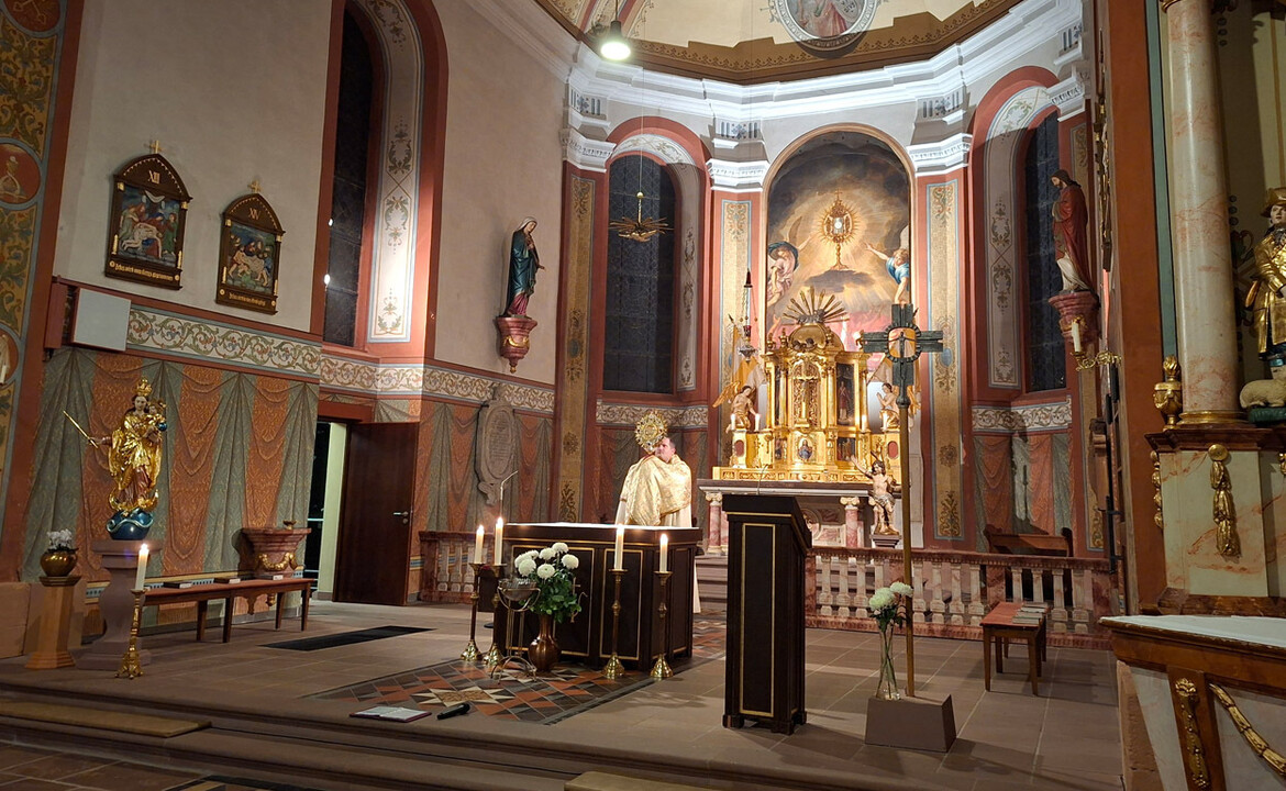 Vikar Berger gestaltete in der Sailaufer Pfarrkirche eine feierliche Andacht mit Gebeten und Gesängen. Zusammen mit den Gläubigen betete er unter anderem die Christkönigslitanei. Pastoralreferent Johannes Dürig sorgte für die abwechslungsreiche musikalische Orgelbegleitung.