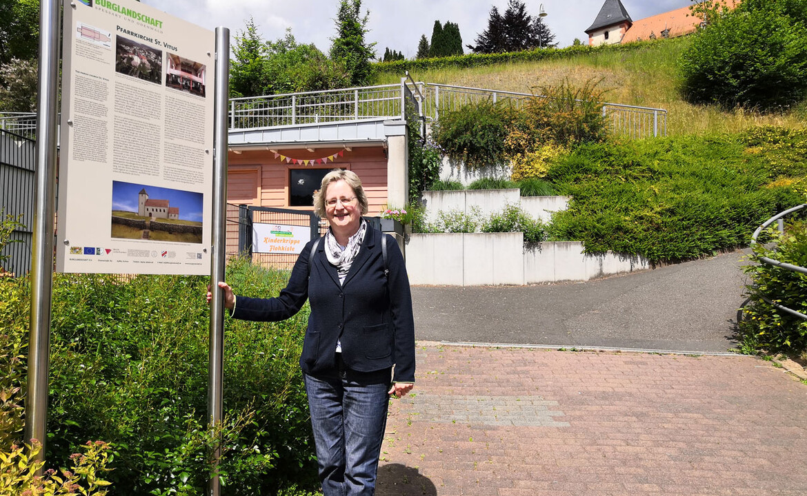 Seit Anfang Mai 2022 steht eine Schautafel zur St. Vitus-Kirche am Fuß des Kirchbergs zwischen Kinderkrippe und Kindergarten.