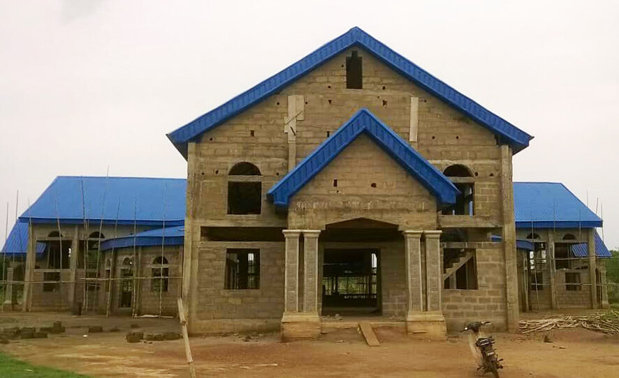 Zum Kirchenbau in Ndingele – Nigeria: Die wichtigsten Dinge sind vorhanden – das Fundament, die Säulen, das Dach, der Boden, die Wände und die Dachziegel, liturgische Geräte, Orgel und Kaseln sind vorhanden. Wir haben schon viel Gutes erhalten, aber die Arbeiten sind noch nicht abgeschlossen. Es fehlen die Fenster, die Türen, die Fliesen, die Kirchenbänke, die Elektroinstallation, die Ausmalung usw.