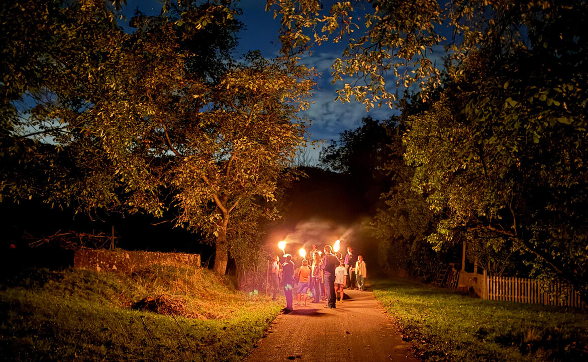 Am Nachmittag blieb Zeit, das Gelände zu erkunden, zu entspannen oder einfach gemeinsam Spaß zu haben. Nach dem Abendessen machten wir uns auf zu einer Fackelwanderung, die mit einer besinnlichen Geschichte zum Nachdenken endete. Später am Abend ließen wir den Tag gemütlich am Lagerfeuer ausklingen.